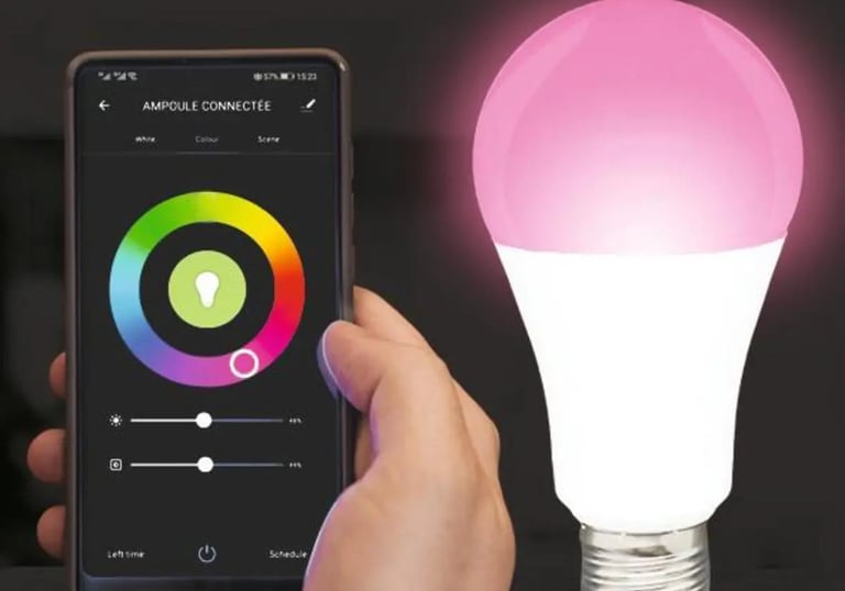 Avec des ampoules LED connectées RGB, modifiez la couleur et la température de la lumière pour s’adapter à votre humeur ou à l’occasion : une lumière blanche froide pour travailler, une lumière chaude pour se détendre, ou des couleurs dynamiques pour une soirée festive.